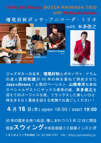 【会場】銀座スウィング 【日時】4月16日(木)