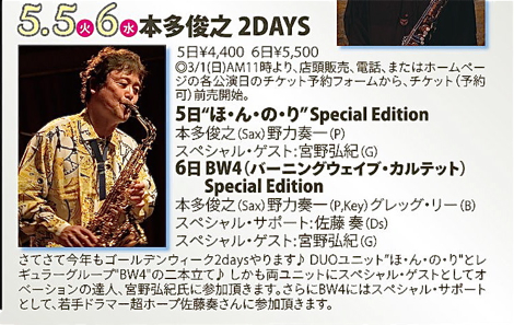 | 5.5(火)&6(水) GWスペシャル2days@PIT INN |