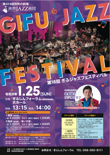 1.25(日) ぎふしんフォーラム大ホール ”第18回 ぎふジャズフェスティバル”