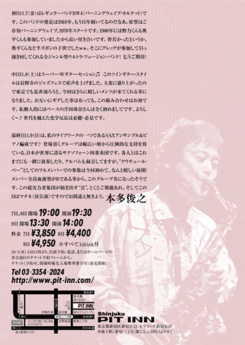 本多俊之(Sax),野力奏一(Pf,Kb),グレッグ・リー(B),奥平真吾(Ds)