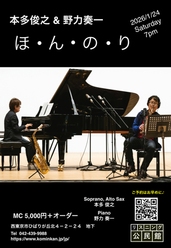 【出演】”ほ・ん・の・り”本多俊之(Sax),野力奏一(Pf)